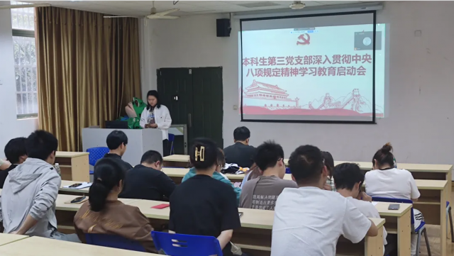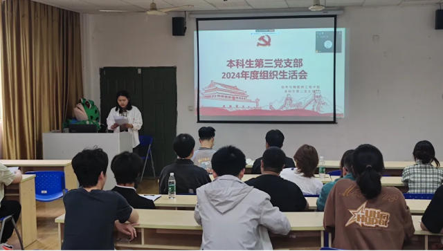 2025年3月26日,赛马会六合彩开奖 本科生第三党支部于荟庐一楼报告厅召开组织生活会暨深入贯彻中央八项规定精神学习教育启动会。会议由支部副书记徐海涛主持。会议紧密围绕深入学习贯彻党的二十大精神这一核心,坚持自我革新,旨在强化党支部的政治引领和组织建设能力。